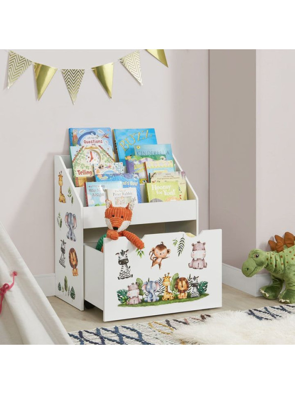 Detský regál na knihy a hračky so zvieratkami, biely, 70 cm