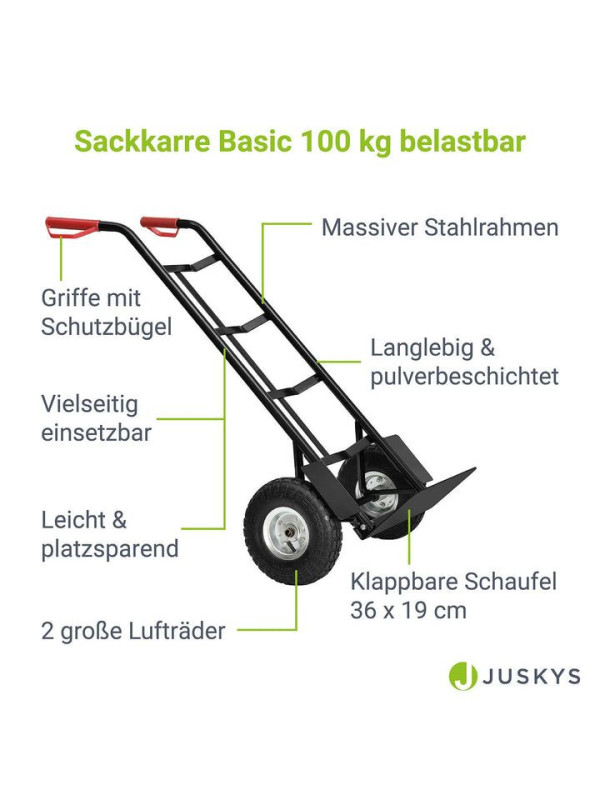 Uľahčite si sťahovanie, nakupovanie a záhradníčenie s týmto spoľahlivým kolieskovým vozíkom. Veľké nafukovacie kolesá zvládnu nerovný terén a skladacie lopaty šetria miesto na skladovanie. Váš každodenný život bude jednoduchší a pohodlnejší, bez ohľadu na to, čo prepravujete.