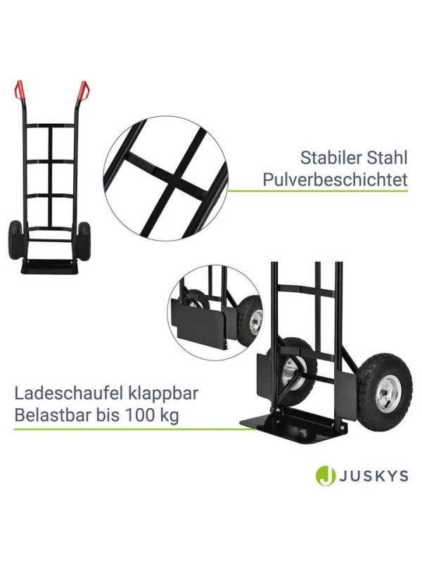 Robustná oceľová konštrukcia zaručuje dlhú životnosť a bezpečnosť pri manipulácii. Nosnosť až 100 kg umožňuje prepravu ťažkých predmetov, zatiaľ čo ergonomické rukoväte poskytujú pohodlie aj pri dlhodobom používaní. Povrchová úprava práškovou farbou chráni pred koróziou a zaisťuje jednoduchú údržbu.