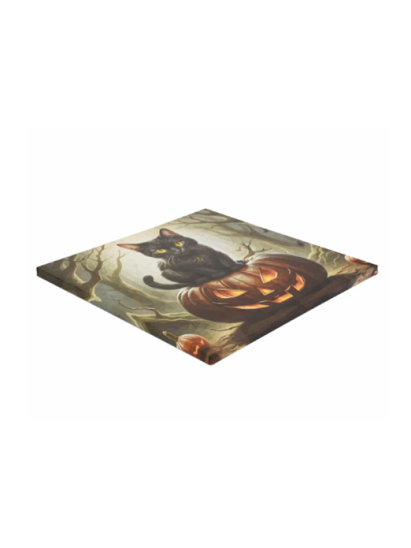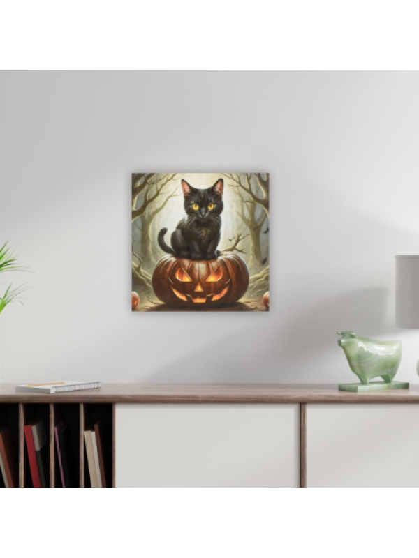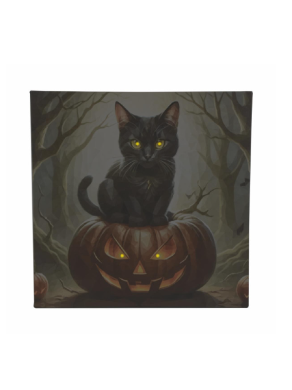 Nástenná maľba mačka na tekvici, 4 LED, 40 x 40 cm