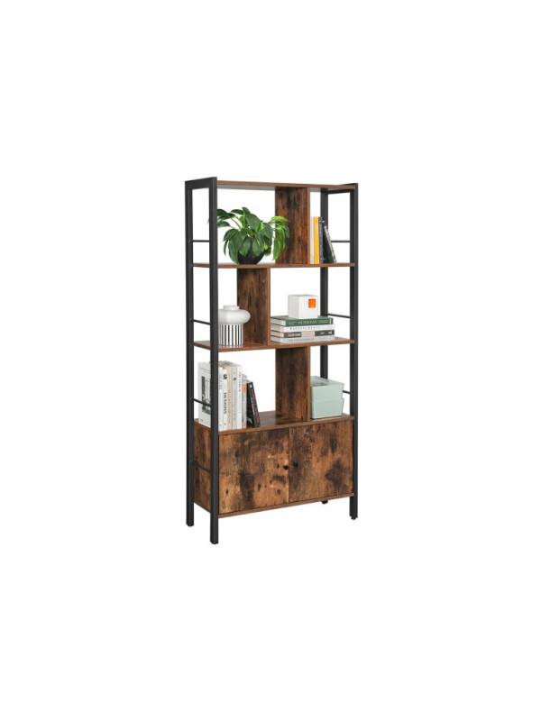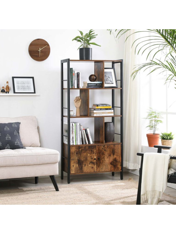 Knižnica s dvierkami, 4 police, vintage, hnedo-čierny