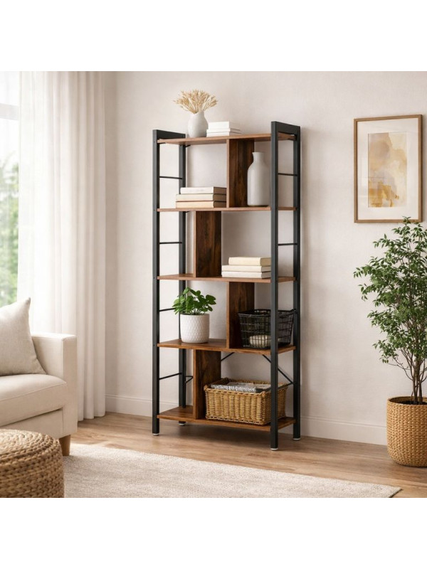 Dizajnová priemyselná knižnica, 4 police, oceľ a drevo