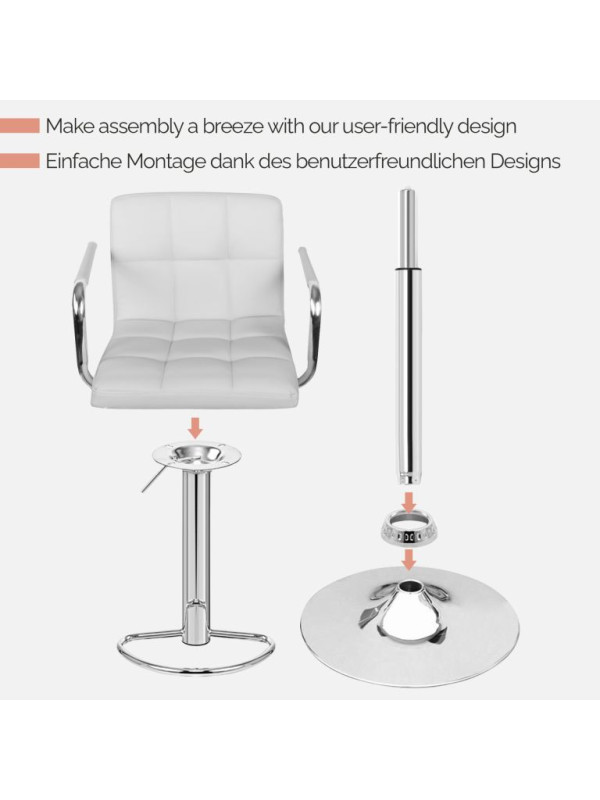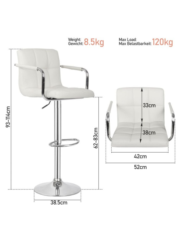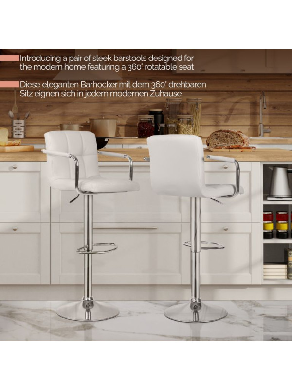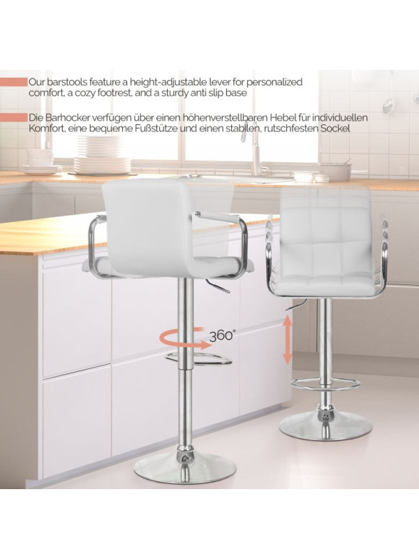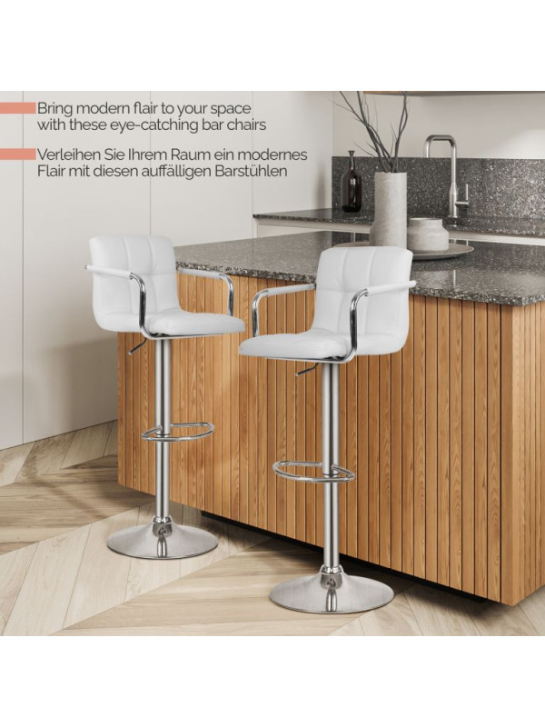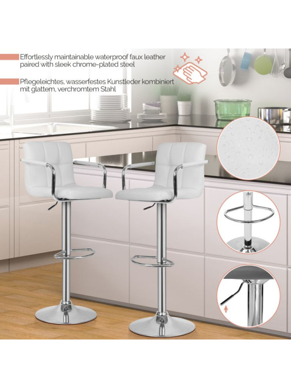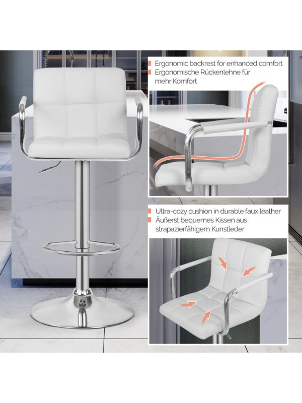 MIADOMODO Barová stolička 2 ks, s lakťovými opierkami, biela