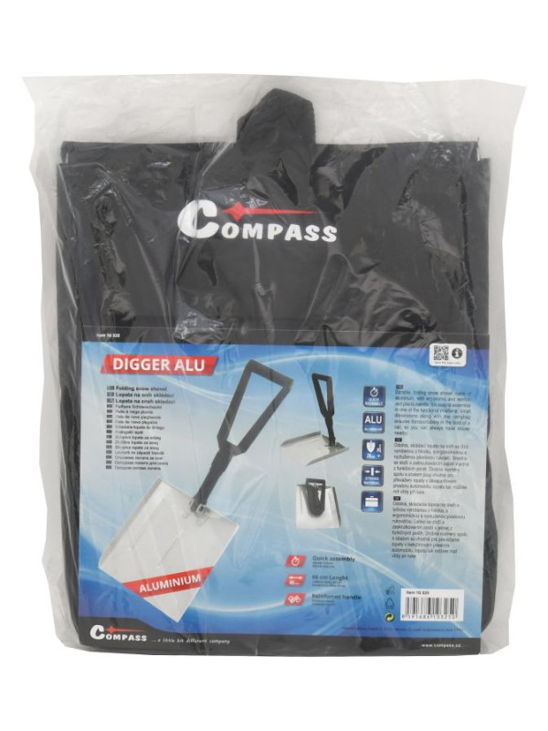 Vďaka malým rozmerom v zloženom stave je lopata veľmi vhodná do kufra auta, kde môže byť neustále po ruke, navyše je zložená v praktickej textilnej taške.