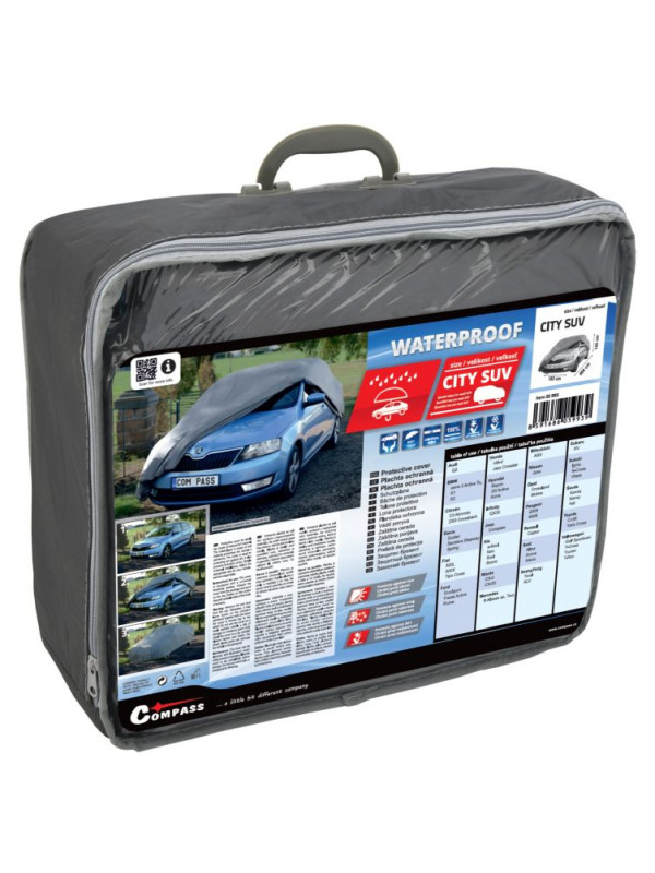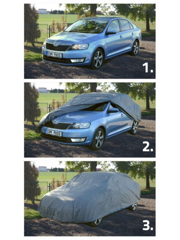 Ochranná plachta na celé vozidlo, vyrobené z veľmi odolného nepremokavého materiálu. Na vnútornej strane opatrené vrstvou, ktorá je šetrná k laku vozidla. Plachta je ideálna proti znečisteniu vozidla, zabraňuje aj námraze. Jednoduché univerzálne upevnenie. Balené v praktickom na zips uzatvárateľnom balení, do ktorého je možné plachu po použití ľahko zložiť a uskladniť. Jednoduché upevnenie plachty - iba sa nasadí na automobil, na spodku sa upevní časť so všitou gumou za vhodné záhyby karosérie / nárazníka. Predná aj zadná časť plachty je osadená pevnými okami pomocou ktorých je možné plachtu ešte pevnejšie upevniť, napríklad sťahovacou gumou a pod (nie je súčasťou dodávky).