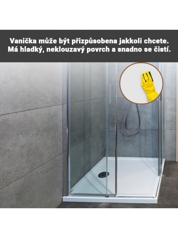 Tento konkrétny model sprchovej vaničky je vyrobený zo spoľahlivého akrylátu a má hĺbku 4 cm, čo umožňuje ľahší prístup do sprchy. Štýlová a elegantná sprchová vanička s veľmi tenkým profilom. Má ľahko čistiteľný lesklý povrch. Tento model je treba zdvihnúť 12 cm od podlahy. Obojstranná inštalácia - podstavec je možné namontovať podľa potreby.