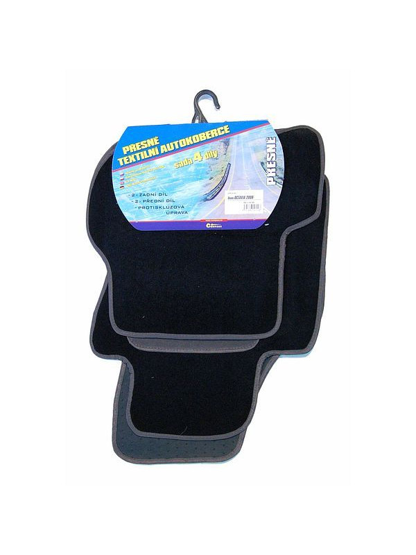 Presné textilné autokoberce pre Škoda Octavia II., rok výroby od 2008. Sada 4 kusy (2 x predný, 2 x zadný diel). Majú čierne prevedenie so šedým lemom a šedým zosilnením koberca vodiča pod pedále.