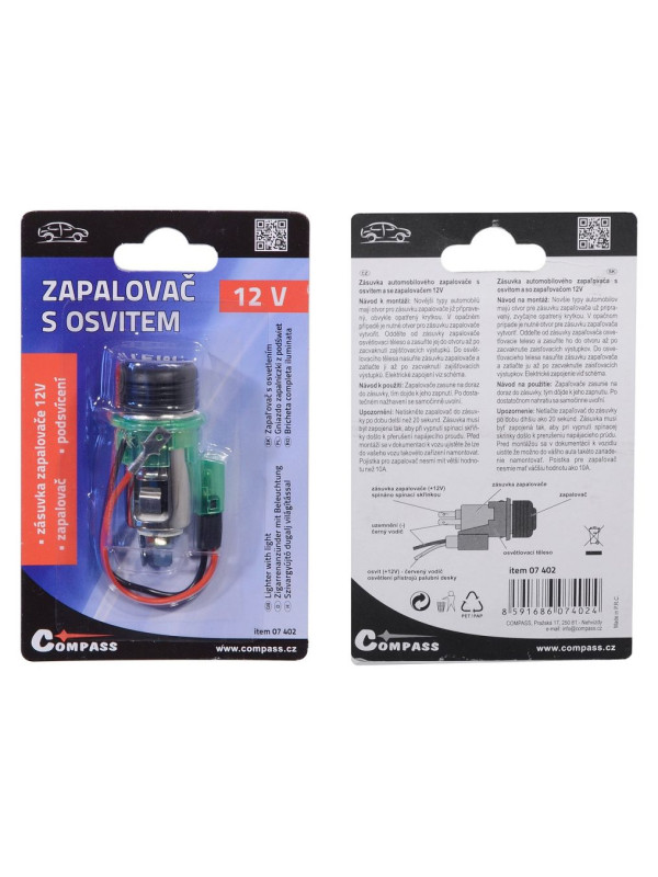 - 1 x zapaľovač s osvitom EURO - 12 V