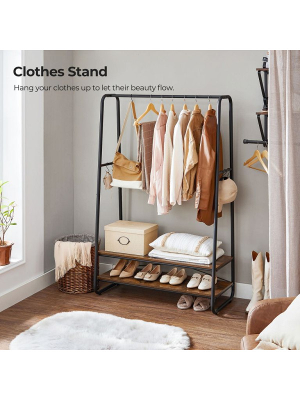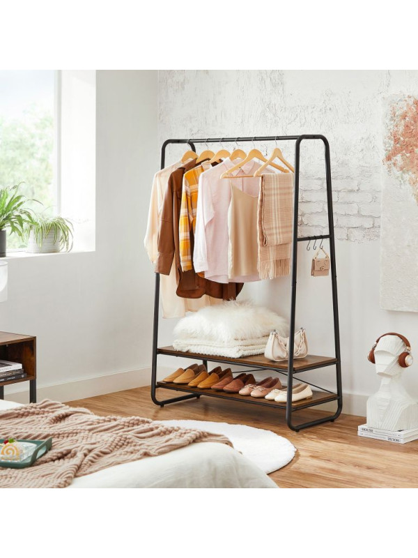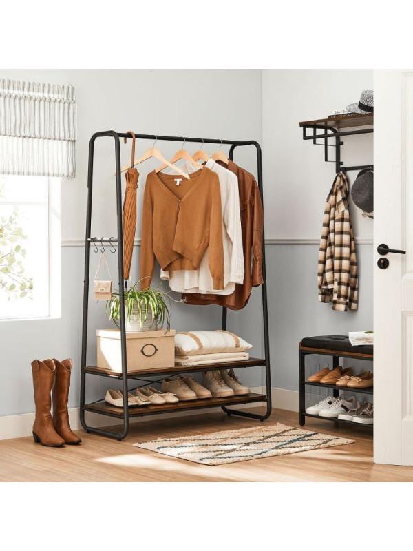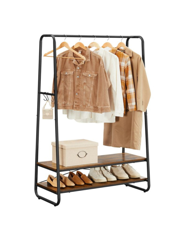 Vešiak na kabáty s policami a háčikmi, 100×45×160 cm, rustik