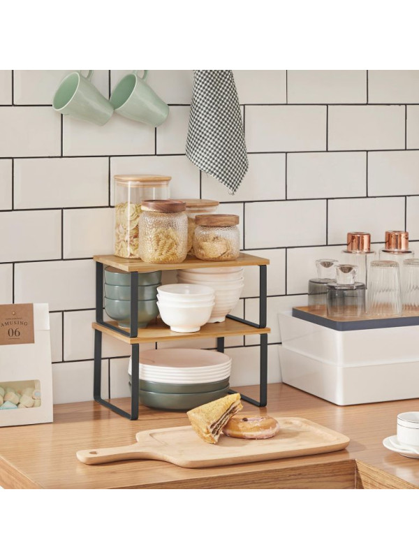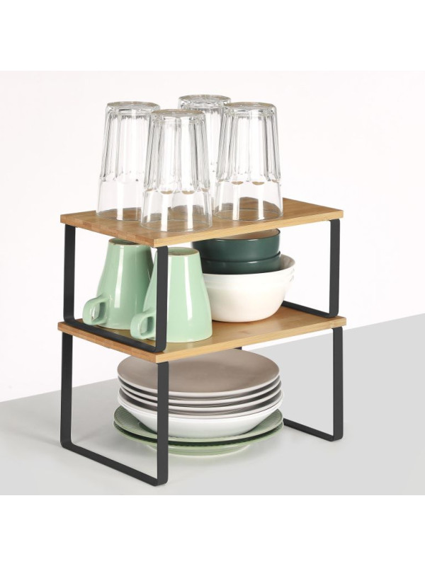 Stohovateľné bambusové police na kuchynskú linku, súprava 2