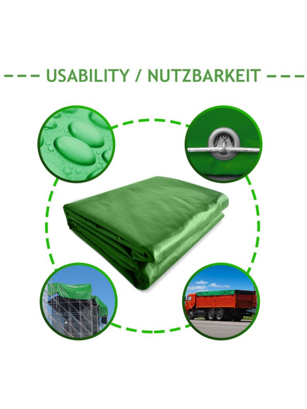 JAGO Plachta 650 g/m², hliníkové oká, zelená, 5 x 7 m