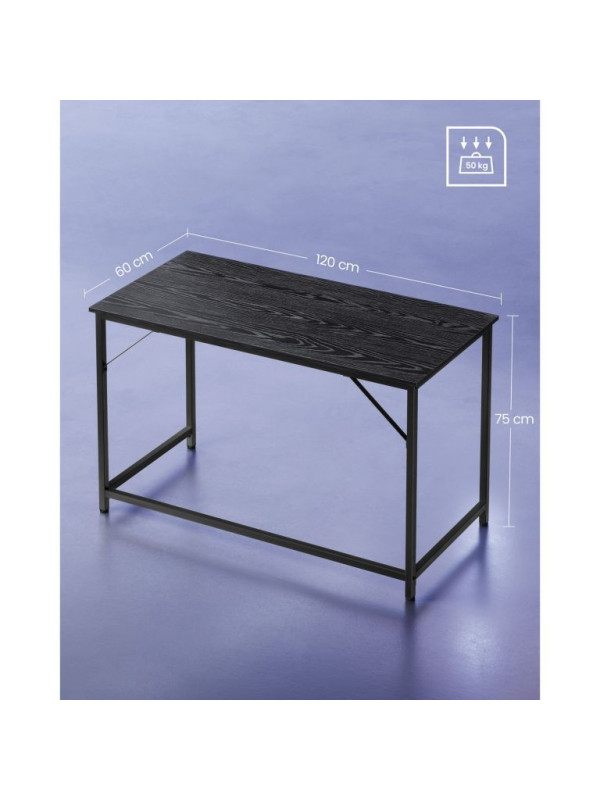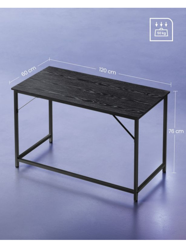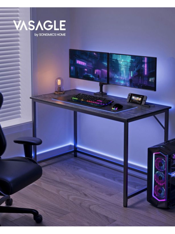 Moderný čierny herný stôl s oceľovou konštrukciou, 120 x 60