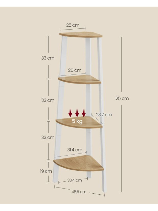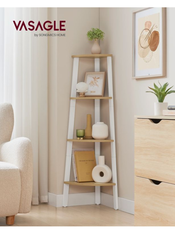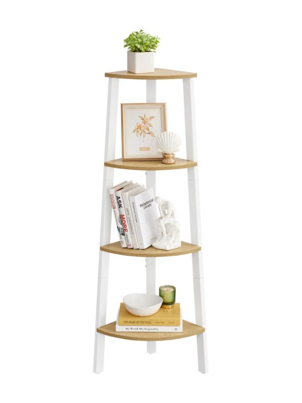 Dizajnová rohová polica, 4 police, zlatý dub/biela