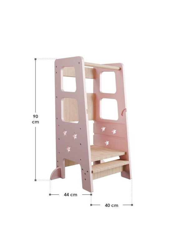 Rastúca detská učebná veža, ružová, výškovo nastaviteľná