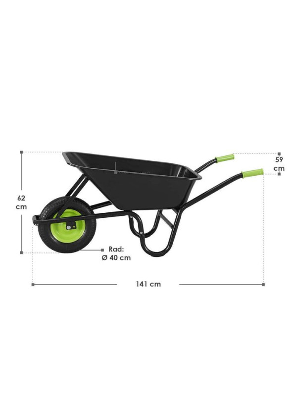 100 l záhradné kolesové vozíky s nafukovacím kolesom, čierne