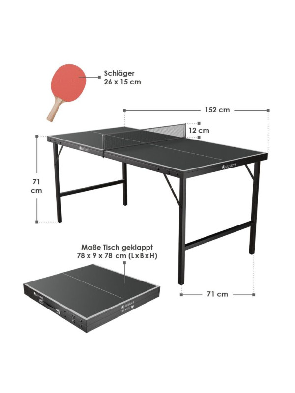 Skladací mini pingpongový stôl s príslušenstvom, 152 x 71 cm