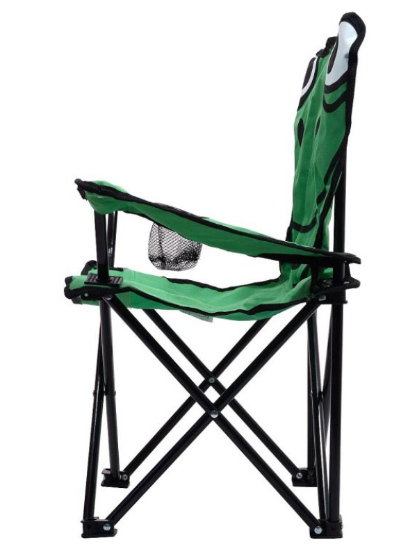 Stolička je vhodná pre deti na dlhšie výlety, do kempu a na ďalšie aktivity v prírode. Je zložená ľahko a rýchlo a je vybavená štyrmi opornými nohami, ktoré môžete uchytiť k zemi prostredníctvom stanových kolíkov, a tým významne zvýšiť stabilitu. Stolička ponúka pohodlné a stabilné posedenie. Má chrbtové operadlo a dve opierky slúžiace ako opora rúk. V jednej z opierok je navyše zabudovaný držiak na pitie.