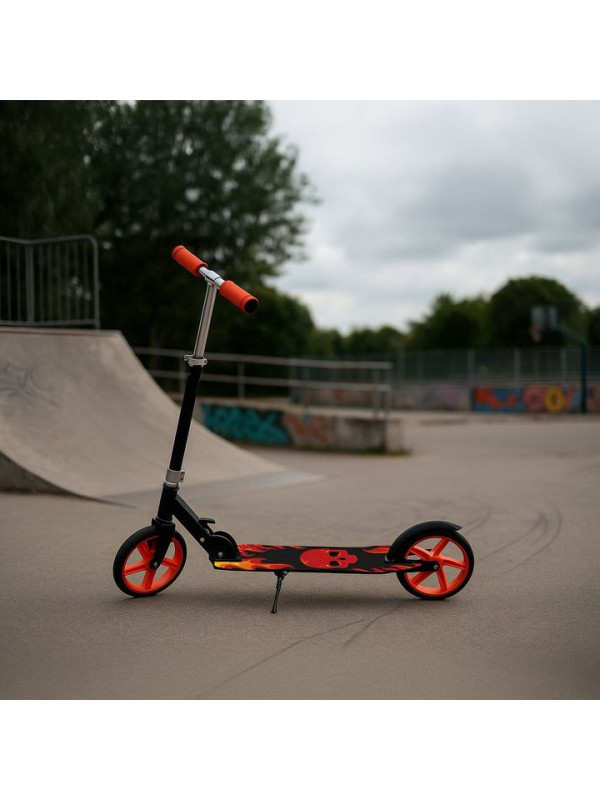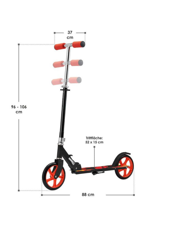 Detský kolobežka s veľkými kolesami a popruhom, čierna