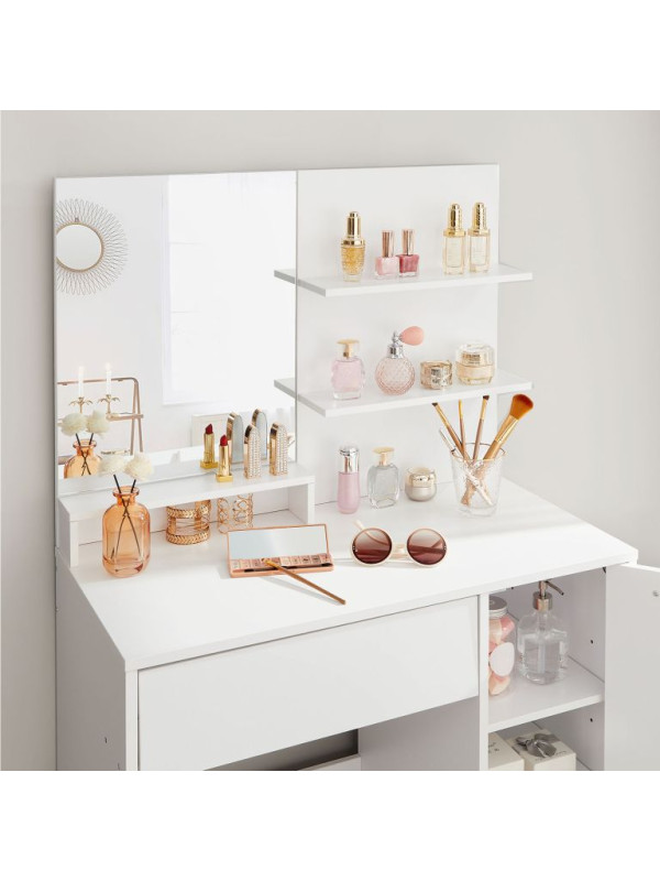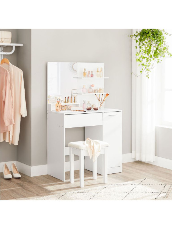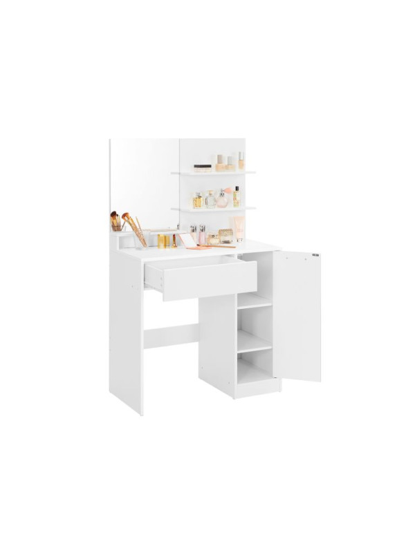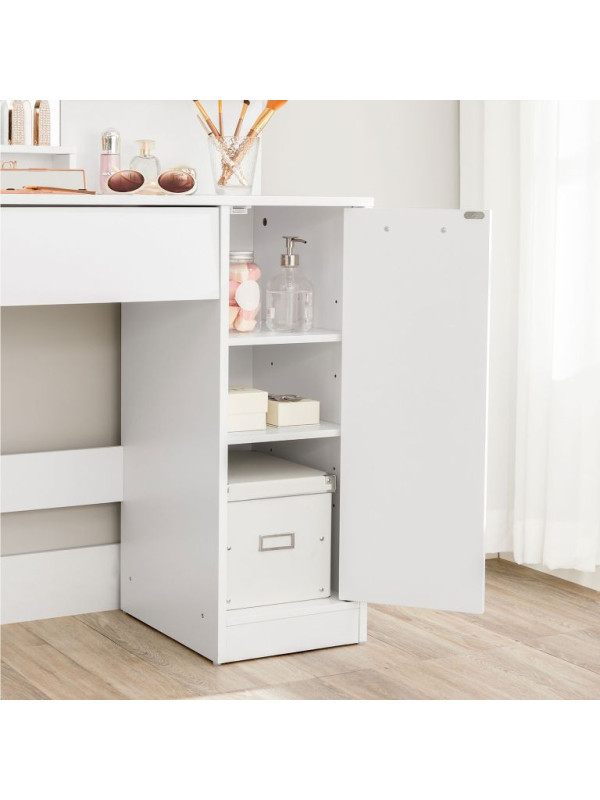 Biely toaletný stolík so zrkadlom a skrinou, 80x40x132 cm