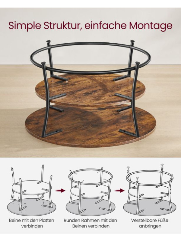 Kruhový konferenčný stolík 80 cm, rustikálna hnedá