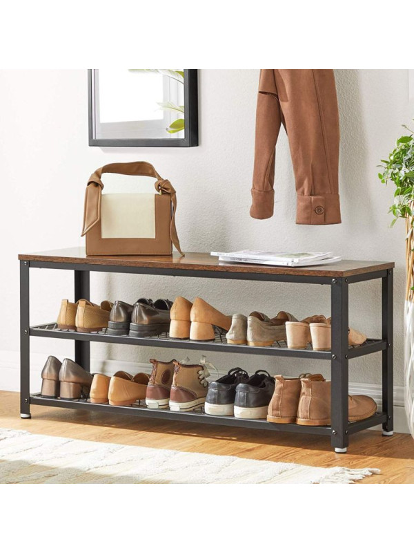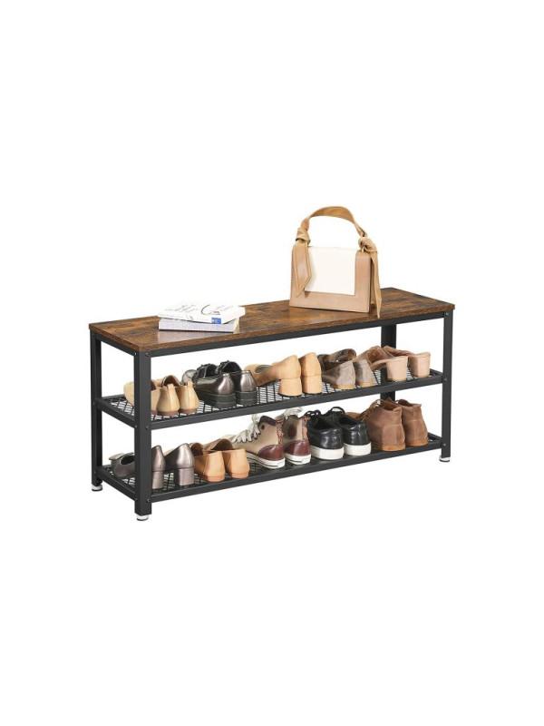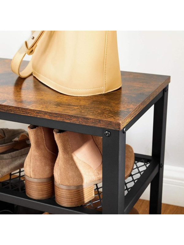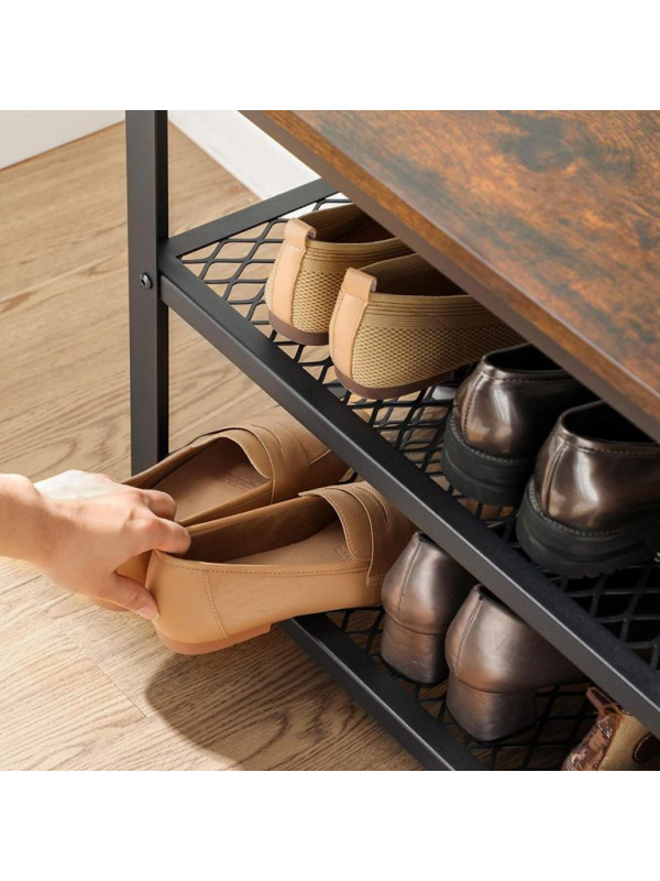 Rustikálna skrinka na topánky s lavicou a kovovým rámom