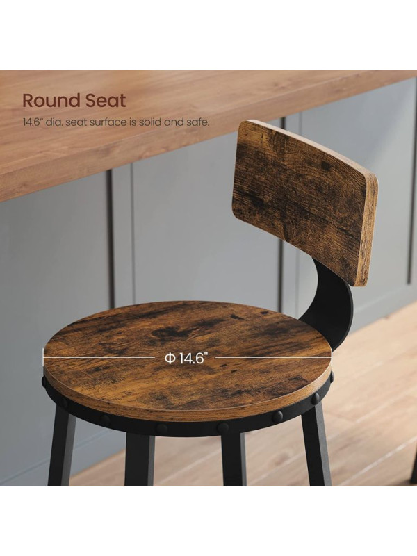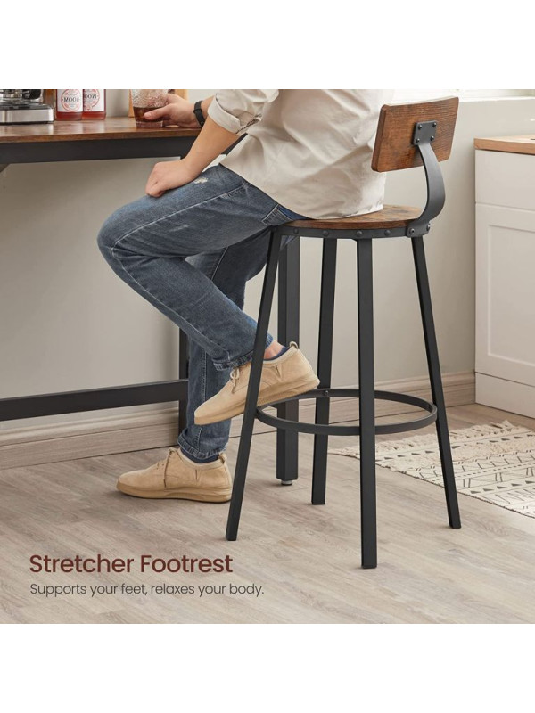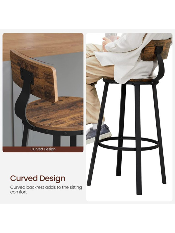 Priemyselné barové stoličky, 2 ks, rustikálna hnedá/čierna