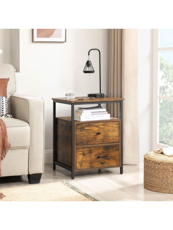 Industriálny nočný stolík s dvoma zásuvkami 45x45x60 cm