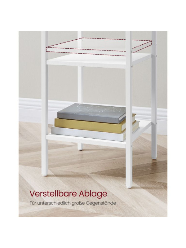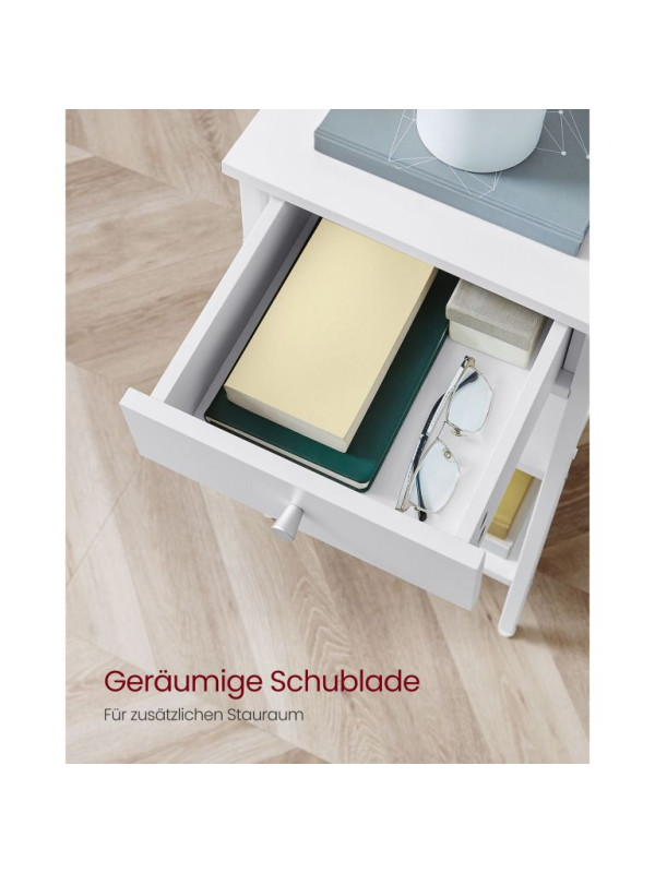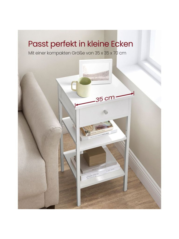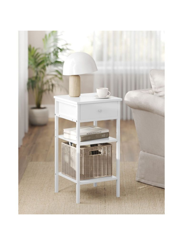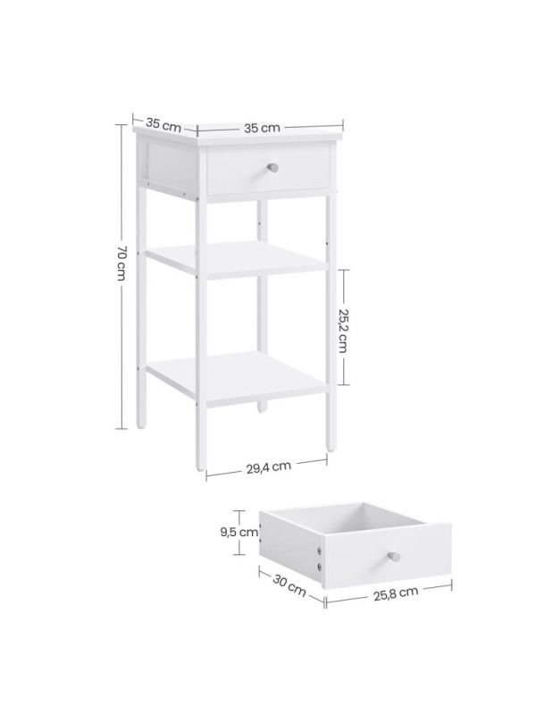 Biely nočný stolík s policami a zásuvkou, 35x35x70 cm