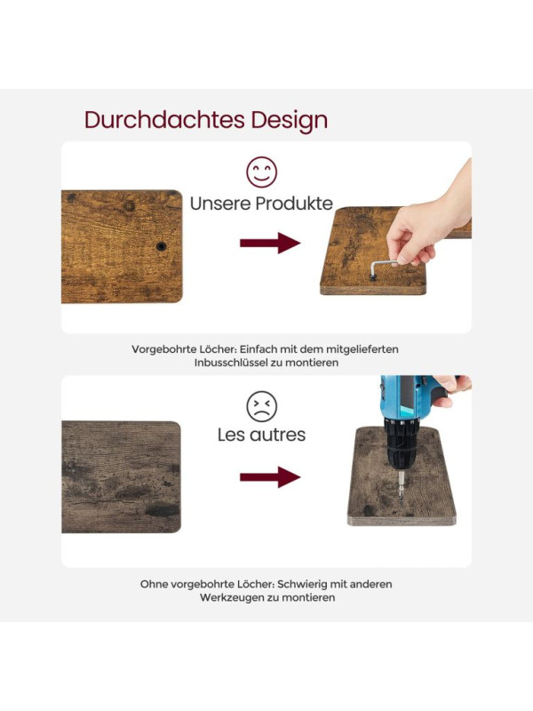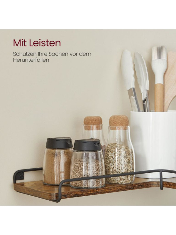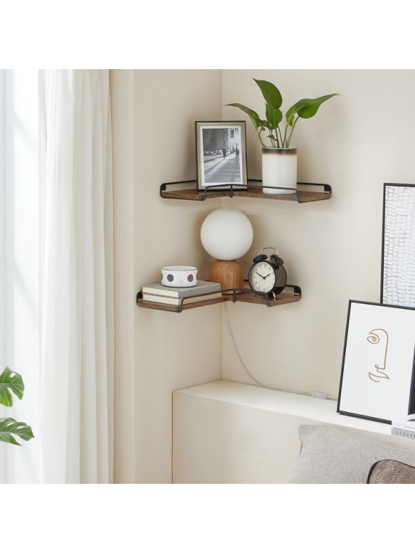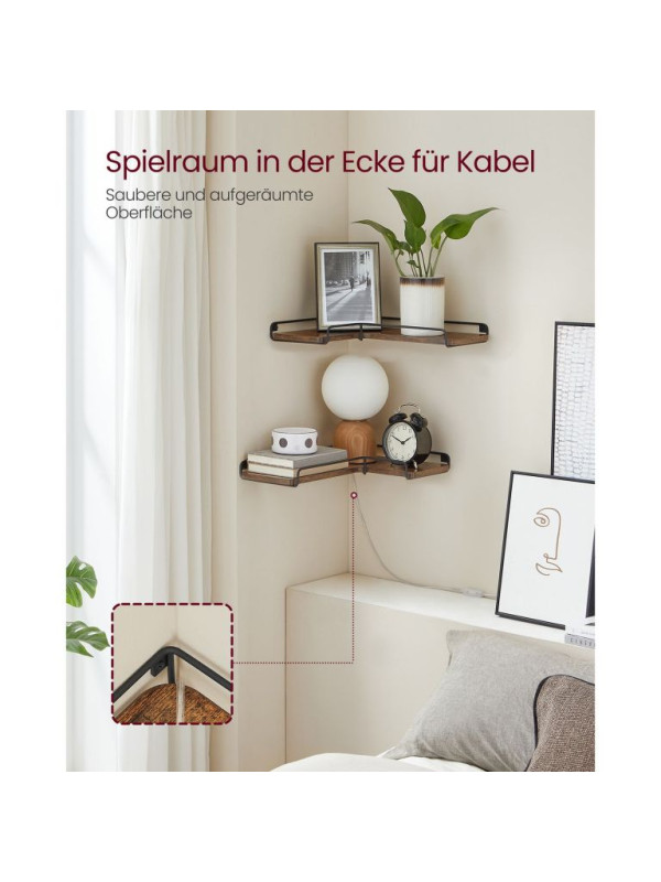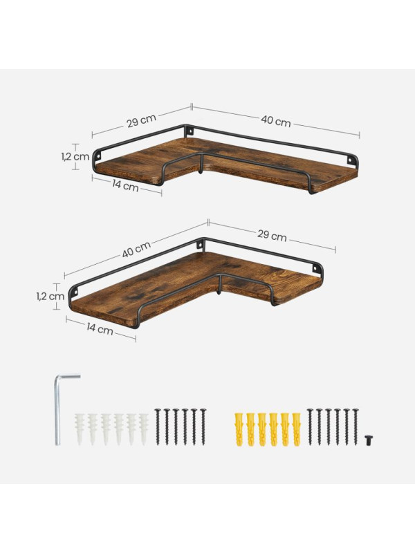 Priemyselné rohové nástenné police, sada 2 ks, hnedá/čierna