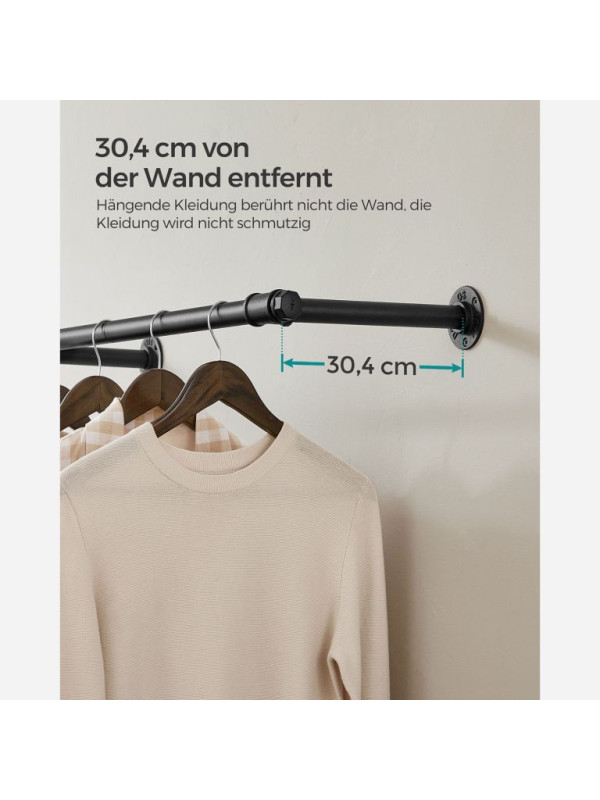 Nástenný vešiak na oblečenie z čiernej ocele, 170 cm