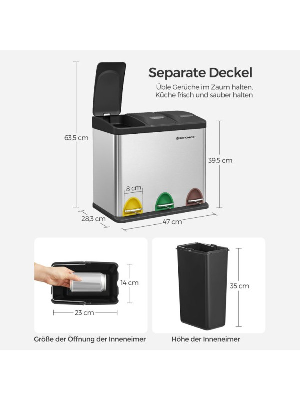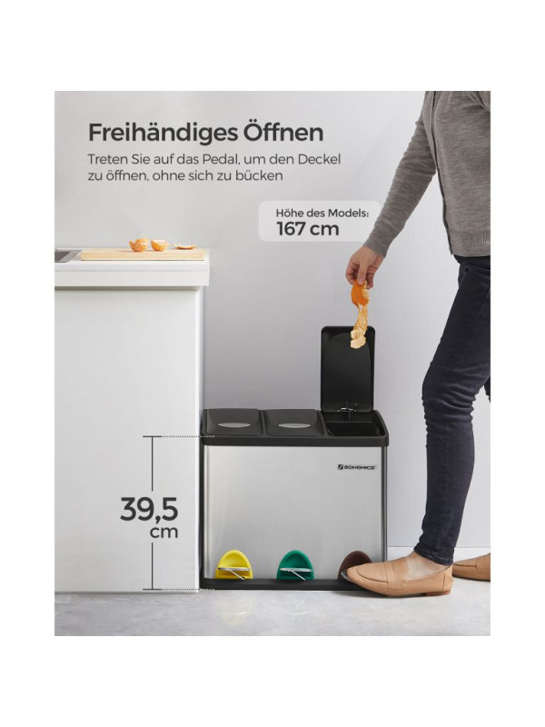 Odpadkový kôš na triedený odpad 24 l, nerez, 3 sekcie