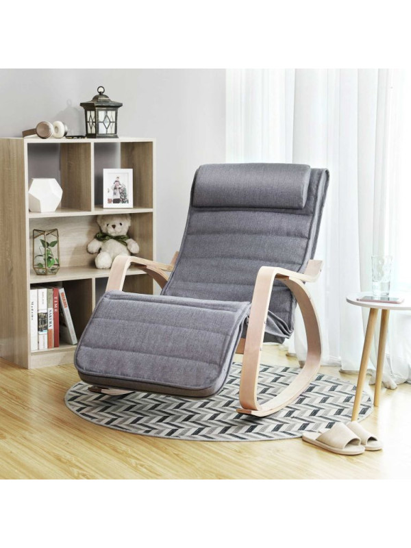 Hojdacia stolička s opierkou na nohy a vankúšom, sivá