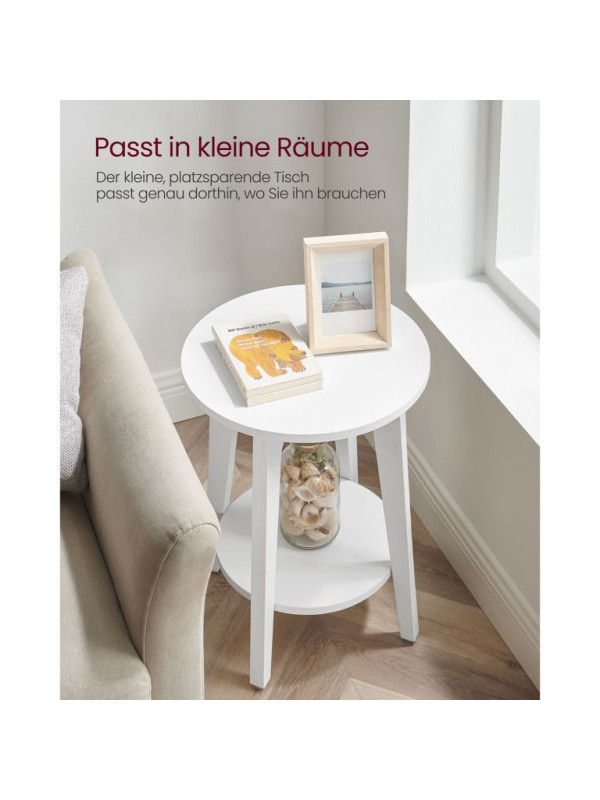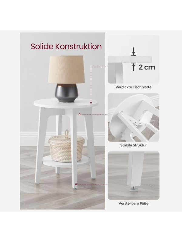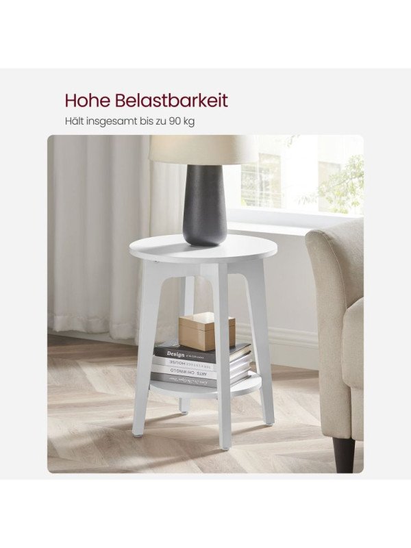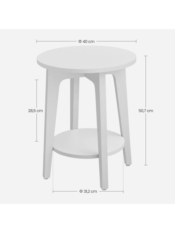 Biely okrúhly stolík s policou, 40x50 cm