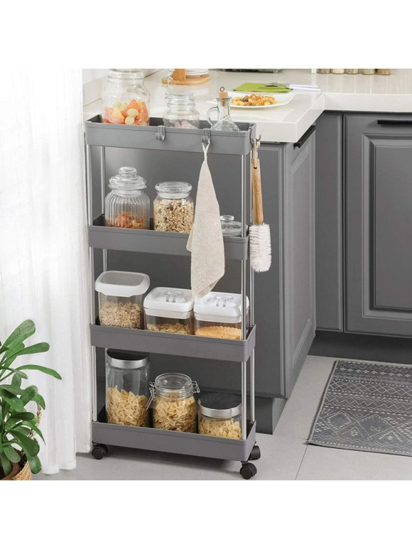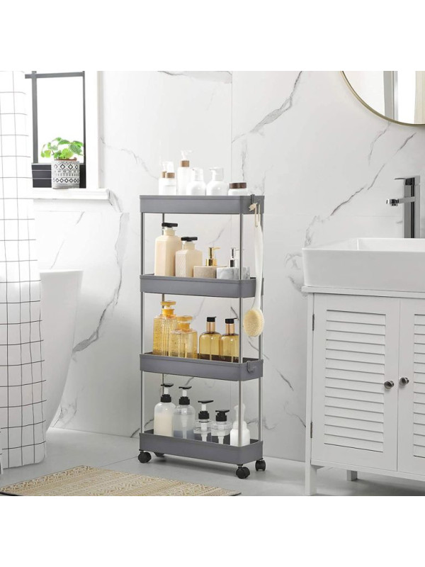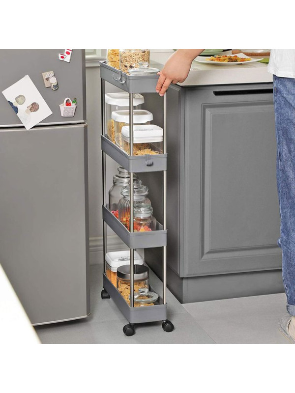 Pojazdný úložný vozík 4 poschodia, sivý, 40x12,5x88 cm