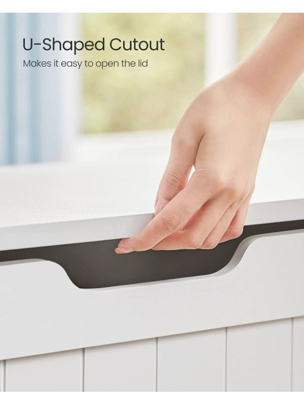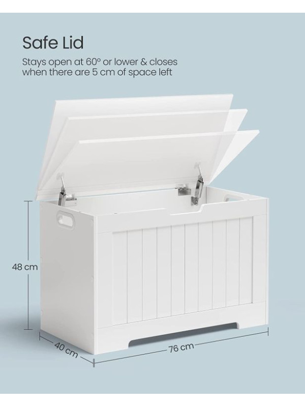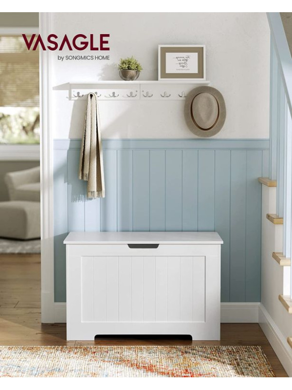 Biela úložná lavica s sedadlom a vekom, 76 × 48 × 40 cm