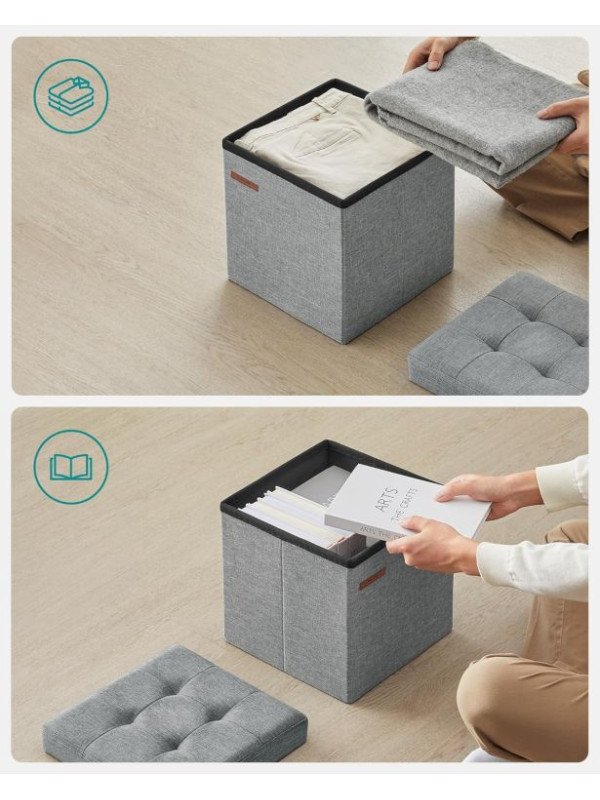 Skladací taburet s úložným priestorom 30×30 cm – svetlo šedý