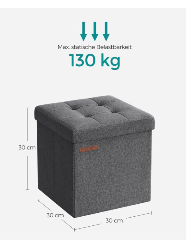 SONGMICS taburet 30×30 cm, úložný box, sivý