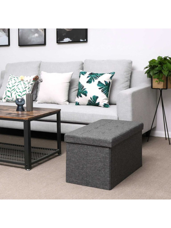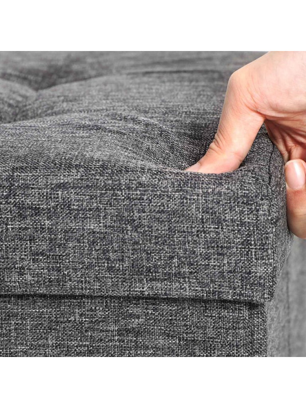 Stabilná konštrukcia z MDF triedy E1 a certifikovaná nosnosť 300 kg z nej robia spoľahlivú lavicu pre dvoch. Ľanový poťah v tmavo šedej farbe je príjemný na dotyk a ľahko ladí s interiérom. Zostavenie zaberie minútu – tri diely, jasný návod, hotové bez náradia.
