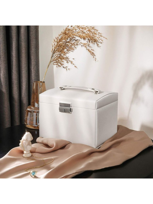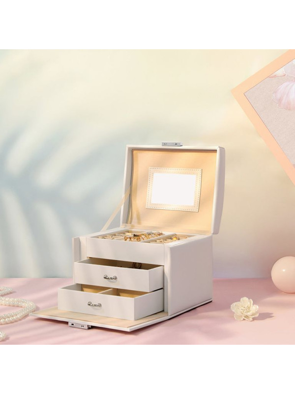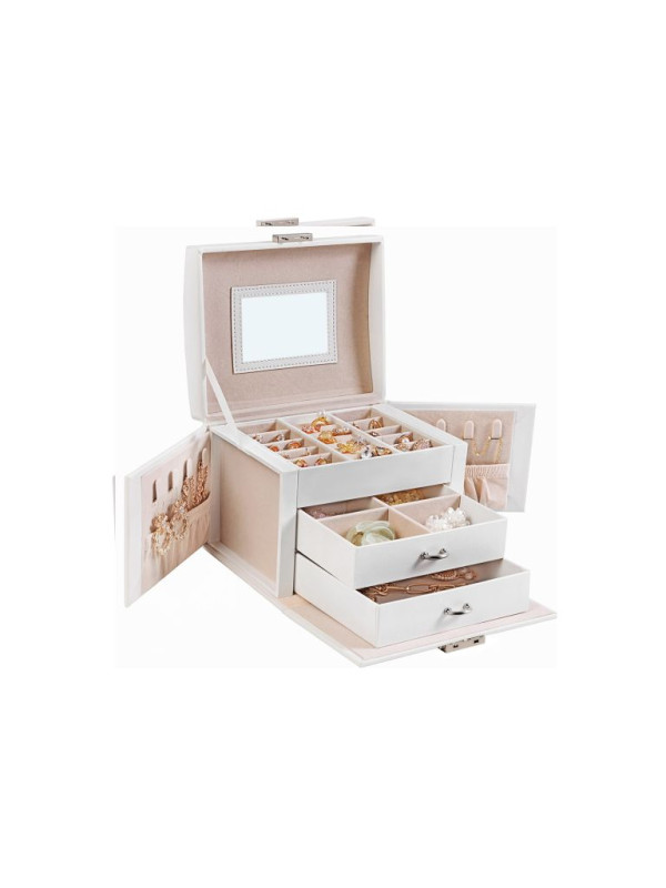 Šperkovnica so zrkadlom, uzamykacia, 3 poschodia, biela