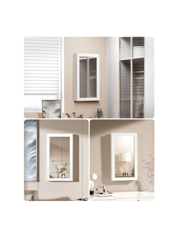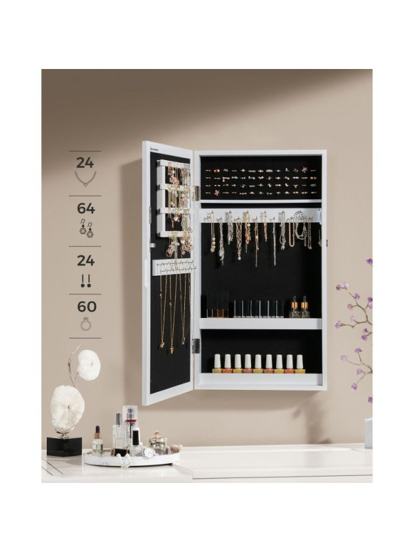 Šperkovnica na stenu so zrkadlom a zámkom, biela, 67 cm