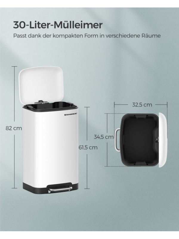 Kuchynský odpadkový kôš 30 l biely, pedál, tiché zatváranie