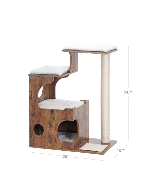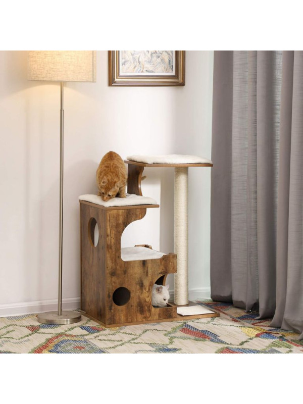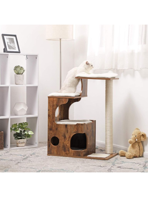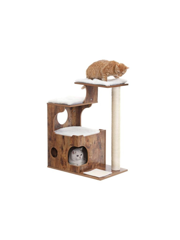 Mačací strom s domčekom a škrabadlom, rustikálny, 66×42×88