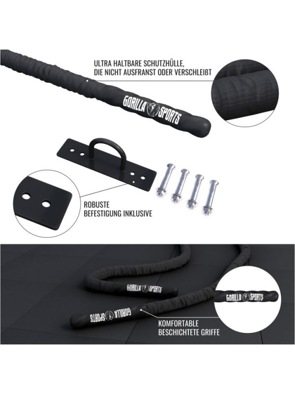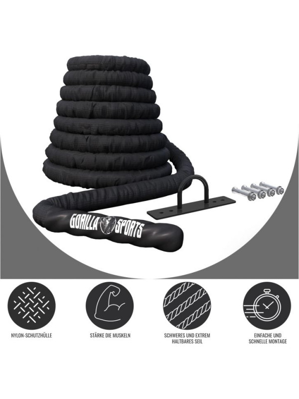 Gorilla Sports Posilňovacie lano s držiakom, 9 m x 5 cm
