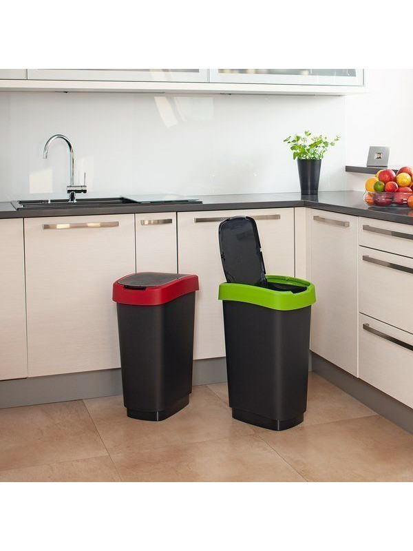 Plastový odpadkový kôš s odklápacím vekom má dva spôsoby otvorenia koša a objem 50 l. Kvalitný materiál a prevedenie od švajčiarskej značky Rotho.