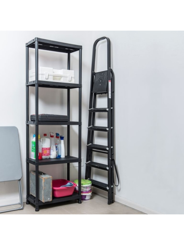 Plastový regál 180x60x30 cm, 5 políc, čierny, recyklovaný