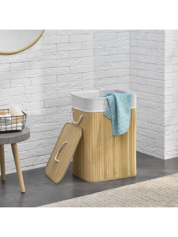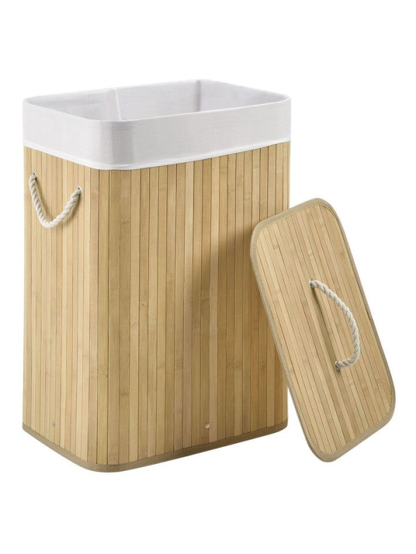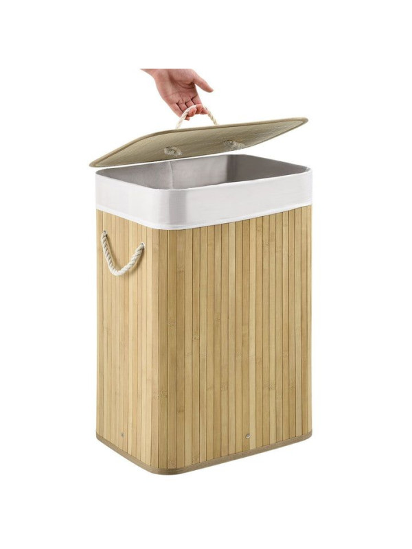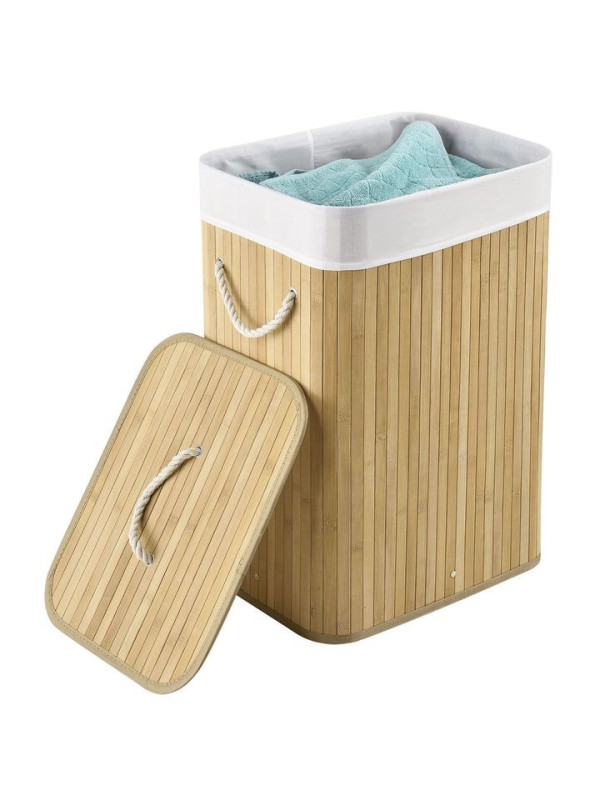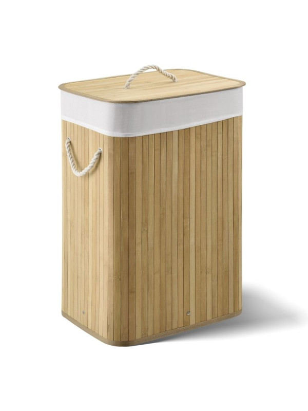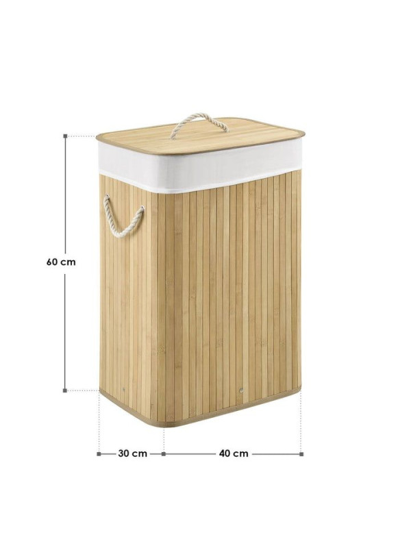 Tento praktický 72-litrový bambusový kôš na bielizeň vám pomôže udržiavať váš domov čistý, uprataný a bez nepríjemných zápachov. Vďaka viečku, odnímateľnej textilnej taške a dvom pevným uchám je manipulácia s ním jednoduchá a skladovanie bielizne hygienické a pohodlné. Jeho prirodzený vzhľad je moderný a diskrétne zapadá do kúpeľne, spálne alebo detskej izby.