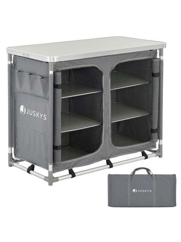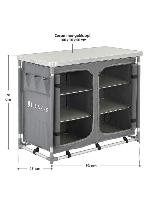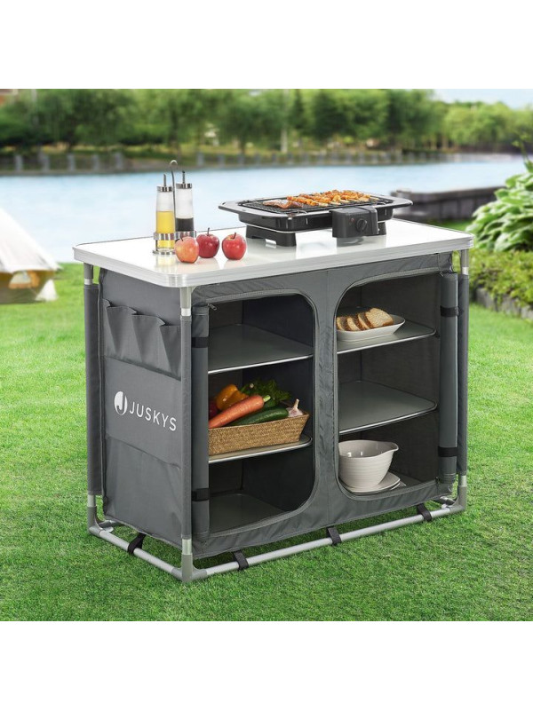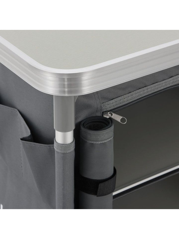 Objavte slobodu varenia vonku s touto kompaktnou a ľahkou kuchynkou, ktorá vám poskytne pohodlie domova aj na cestách. Veľká pracovná plocha a dostatok úložného priestoru zaručujú, že budete mať vždy po ruke všetko, čo potrebujete. Užite si chvíle s rodinou a priateľmi bez starostí o organizáciu kuchyne.