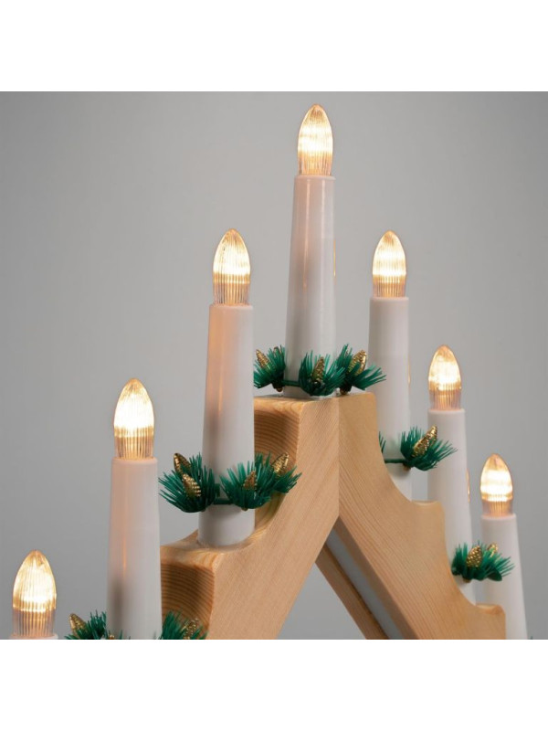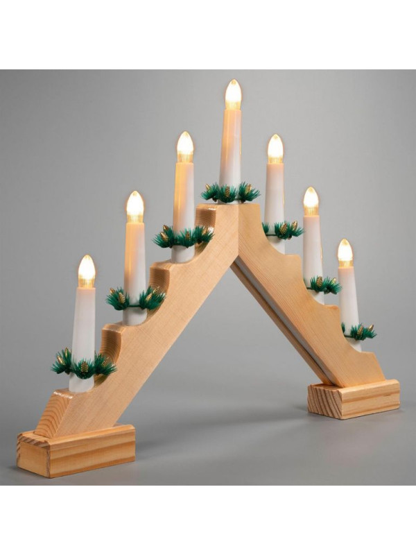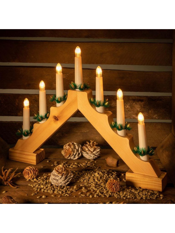 Tento klasický svetelný ihlan z prírodného dreva, ktorý je vybavený 7 teplými bielymi LED diódami, vytvára vo Vašom byte vianočnú atmosféru a slávnostne ozdobí Vaše okno. Vďaka prevádzke na batérie ste nezávislí na zásuvkách a môžete svietnik umiestniť kamkoľvek. Nízka spotreba energie vďaka technológii LED. Svietnik má integrovaný praktický časovač.
