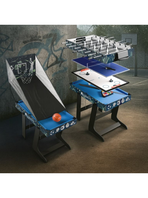Vďaka stabilnej konštrukcii, bohatému príslušenstvu a skladnému prevedeniu je tento multifunkčný stôl ideálny do detských izieb alebo herných kútikov. Pomáha rozvíjať postreh, koordináciu aj tímového ducha a zabaví deti na celé hodiny.