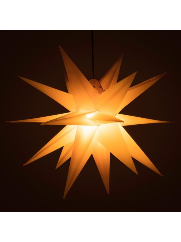 Vianočná hviezda z vysoko kvalitného PVC rozsvieti nielen Vaše okná, ale aj celý domov. Možno ju voľne zavesiť do priestoru. Vďaka napájaniu na batérie nebudete závislý na prístupe k zásuvke. Skrášlite si svoju domácnosť touto tradičnou dekoráciou v modernom prevedení.